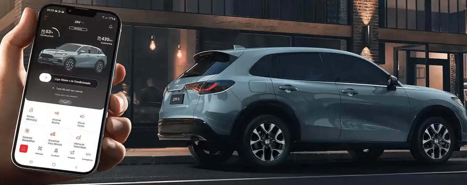 O ar-condicionado do ZR-V é digital e possui sistema Dual Zone que permite programar diferentes temperaturas, criando um ambiente confortável para todos os ocupantes.